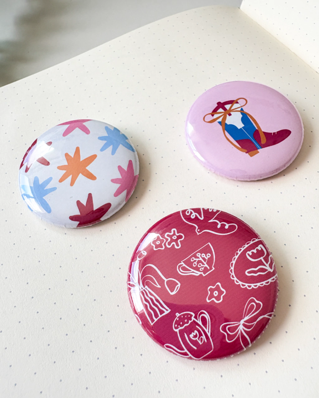 Kit com 3 bottons no tema da coleção 2026!