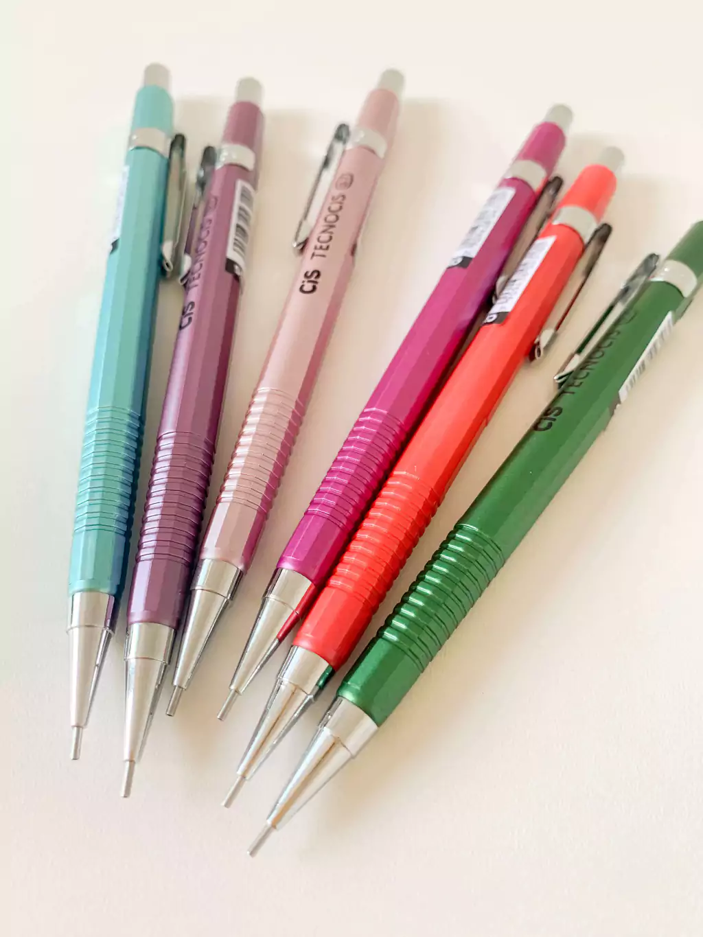 Esta é a nossa lapiseira técnica metalizada da marca CIS. Disponível nas cores: vermelho, verde, azul, roxo, lilás, rosa. Grafite 0.7mm